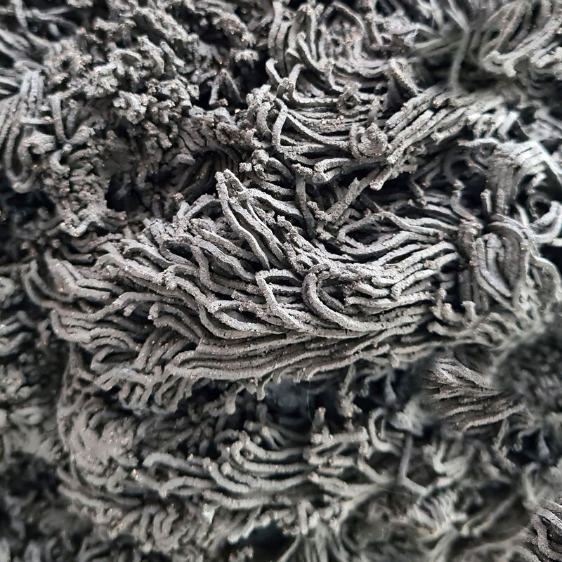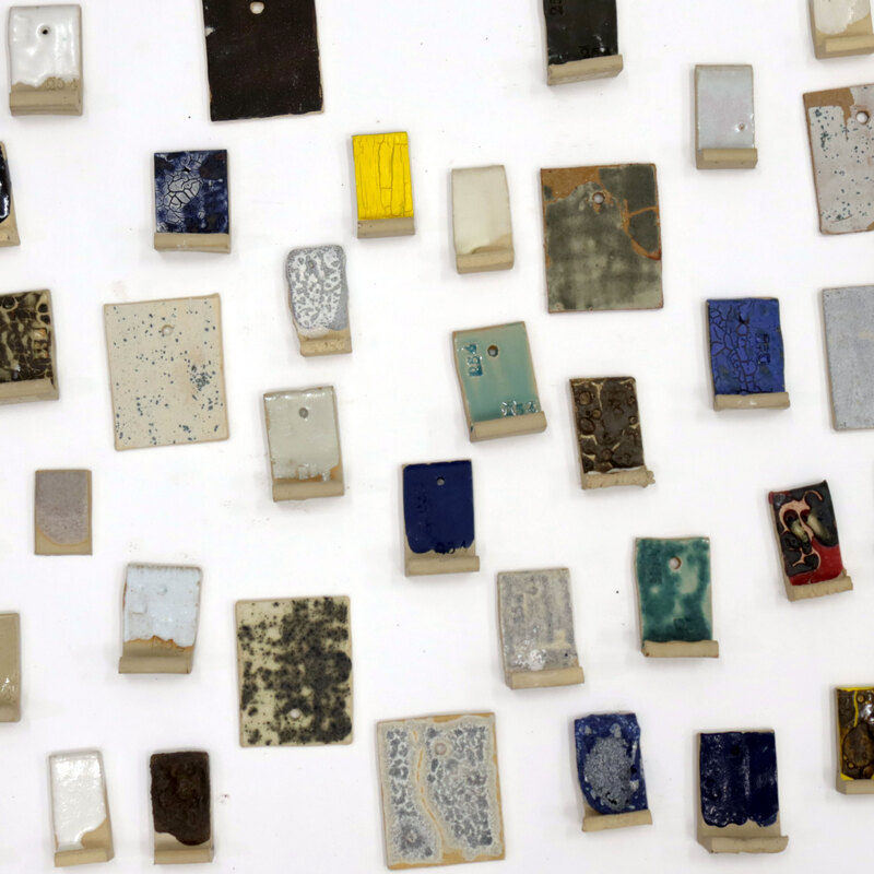 Gli elementi di fioo sono modellati con diversi tipi di gres (argilla a pasta dura) che, grazie a differenti miscele, hanno colori e texture diverse: nero, sabbia, rosso, e bianco.